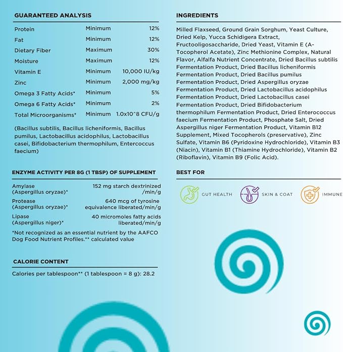 - SUPPORTS GUT HEALTH AND DIGESTION, AVOIDS INFECTION: Loaded with live dog probiotics and enzymes to promote a balanced gut, reduce gas, and support better nutrient absorption, ideal probiotic for dogs' digestive health.