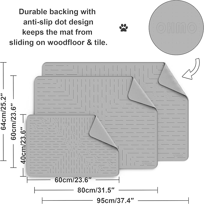 OHMO Cat Litter Mat Trapping Mat Premium Silicone Rubber 23.5x16" Ash, Waterproof and BPA Free Kitty Litter Box Mat, Easy to Clean and Keeps the Floor Tidy