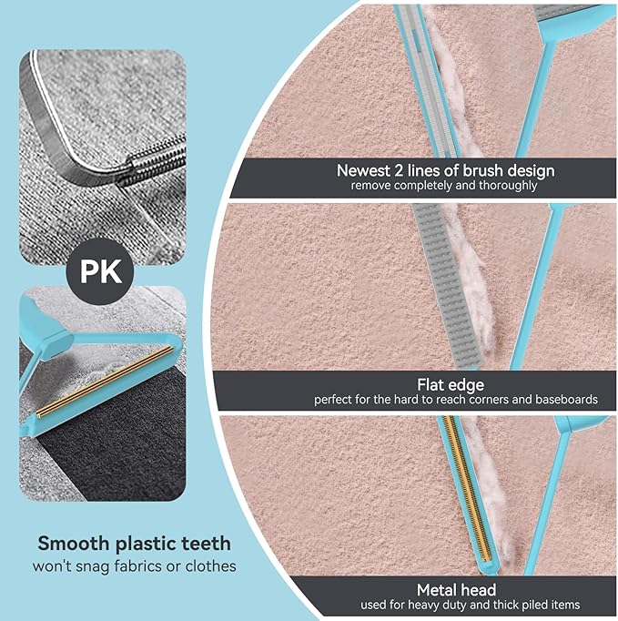 - SUPERIOR QUALITY:The fabric shaver easily removes pet hair, bread crumbs, lint, etc., The Lint Remover is very suitable for washing clothes, bedding, furniture and car interiors. Plastic Lint Shaver with 3 Lines of Brushes and Flat Edge --- Smooth plastic teeth, won't snag fabrics or clothes.All together, this lint cleaner can safely and efficiently remove dog & cat hair, furs, fuzz, pills, and hairball from the sweater, blankets, curtains, jackets and more