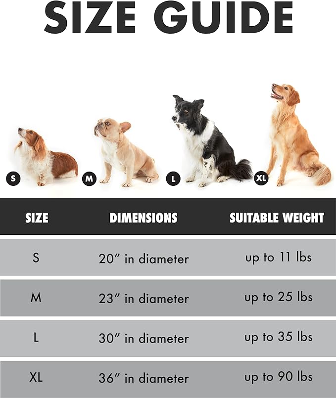- Find the perfect fit for your furry pal with our four size options: Choose the 20-inch bed for tiny tails under 10 lbs, the 23-inch for those cuddly companions under 20 lbs, the 30-inch for medium buddies under 40 lbs, and the 36-inch for larger friends up to 60 lbs. Don't forget to measure your pet to ensure they get the coziest spot for their naps and relaxing time