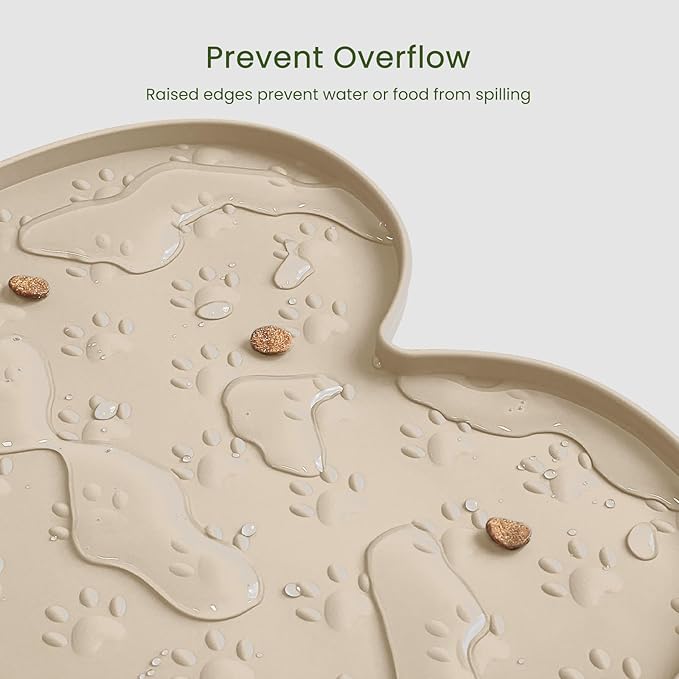 - Raised Edge - The high edge of this feeder mat keeps food and water within the tray and prevents spillage onto a clean floor. Keep your living space tidy and clean, say goodbye to messy floors, you just need to clean the dog bowl mat regularly.