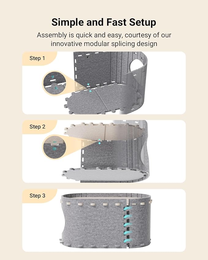 - Easy Assembly, Effortless Cleaning, and Portable Storage: PeekaPurr prioritizes user convenience, effortlessly assembling and folding flat for storage or travel. With detachable parts, maintaining a hygienic cat haven is a breeze—simply use a vacuum cleaner or roller for quick cleaning. Keep your cat's environment pristine with minimal effort