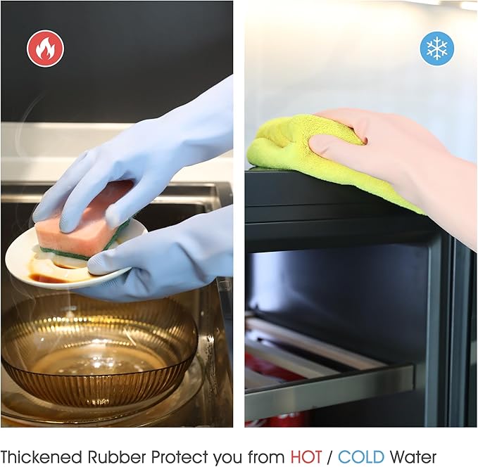 - Premium Quality Rubber Cleaning Gloves: Made from 100% thickened natural latex, these gloves offer exceptional wear resistance, stain-free performance, and odor-free protection. The soft latex ensures flexibility and comfort, providing long-lasting durability for all your household cleaning tasks.