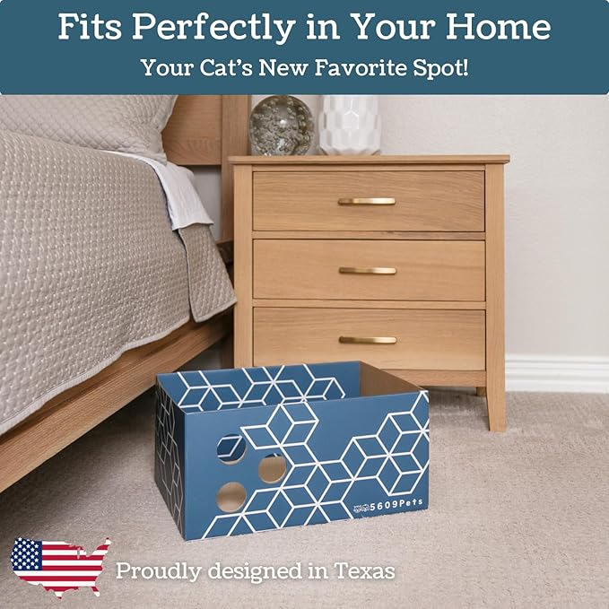 - [STYLISH BLUE LAKE PATTERN] Made in a vibrant shade of blue with an irresistible modern design, our cardboard cat scratcher box is not just a cat accessory; it's a statement piece that adds a pop of color and charm to your home. The cute aesthetic is guaranteed to make your cat's scratching time a delight for both of you.