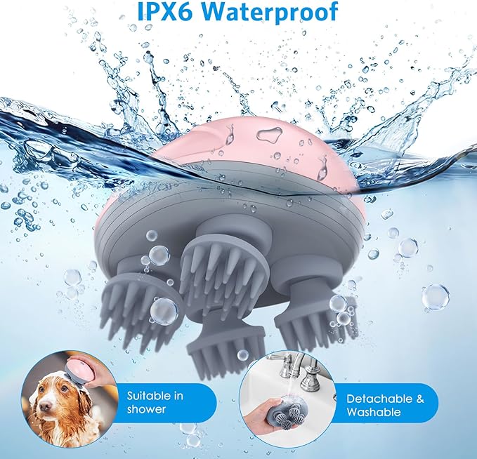 - 【IPX6 Waterproof】Pet massager can be used not only at ordinary times, but also in the shower, enhance the cleanliness of the shower, help to remove dirt. The four massage heads are removable for easy cleaning, and the soft food-grade silicone head prevents hair pulling and tangling and won't harm your pet's skin.