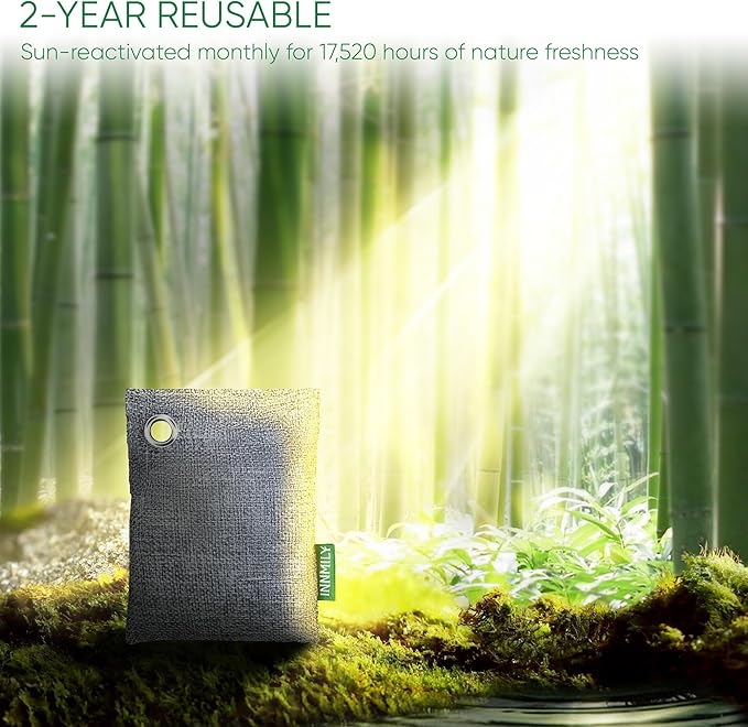 - 2 YEARS CONTINUOUS FRESHNESS - Revel in 17,520 hours of natural deodorizer odor eliminator! A simple monthly sunbath recharges the bags, making them a cost-effective choice for your pocket and a compelling one for the planet. activated charcoal air purifiers for bedroom and drawer deodorizers are also various for any space that need deodorizer, we recommend use multiple quantities for maximum deodorizing impact as smoke smell eliminator for home