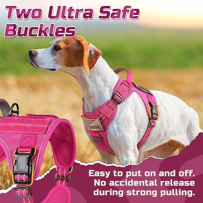 - Easy to Adjust & Wear: The tactical dog harness features 4 convenient adjustment points (2 Shoulder, 2 Chest) to ensure a snug fit for dogs of all sizes. Two quick-release buckles are designed not only for easy on and off, but also can withstand great pulling force, providing security for training, hunting, walking, and any other occasions