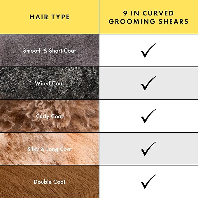 - Movember 2025 Participant - These curved scissors for dog grooming feature rounded safety tips to prevent nicking the skin, eyes, nose, and ears. Lightweight design provides comfort and prevents hand fatigue while trimming.