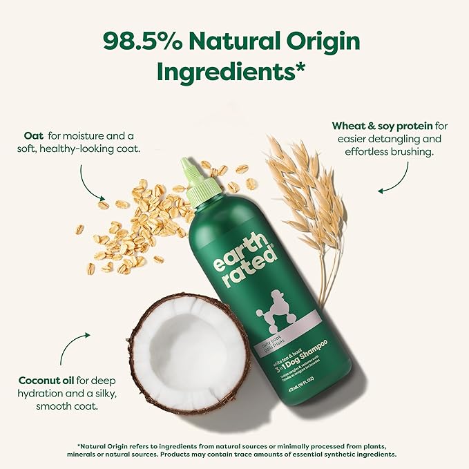 Earth Rated 3-in-1 Detangling Dog Shampoo and Conditioner, Deodorizing Oatmeal Shampoos for Dogs and Puppies, Great for Smelly Pets, White Tea and Basil Scent, 16 oz