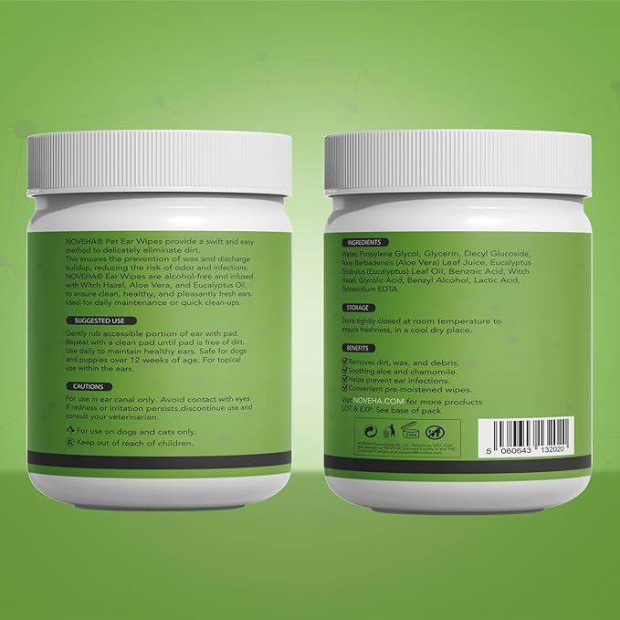 - ๐ฉโโ๏ธ ADVANCED RECOMMENDED FORMULA - NOVEHA Dog Ear Cleaning Wipes boast an advanced formula. Safe for dogs and cats, your pets are in the best hands with our top-tier ear care solution.