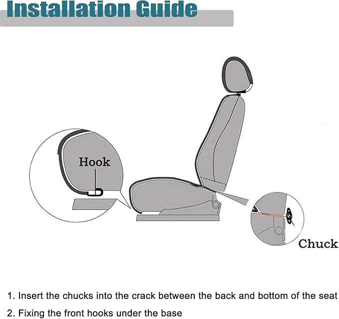 - Easy to Install: This car seat cover is easy to install. Just insert the chucks into the crack between the back and bottom of the seat and fixing the front hooks under the base, you can finish it in 5 minutes.