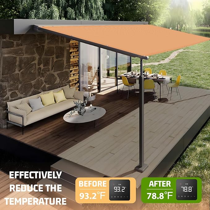 - 【Reinforced Copper Grommets】Copper grommets are rust-resistant for long-term use. Each shade for patio outside is designed with heavy-duty metal grommets every 2ft, making it easier to hang and secure the shade with the included rops and zip ties.