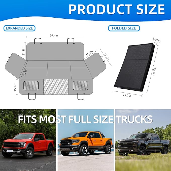 - 【Fits most full-size truck】The dimensions of seat covers for dogs are 57.4*30.3inches.Dog seat cover is specially designed for medium to large trucks.The dog bed for truck is suitable for F150 /RAM 1500/GMC...
