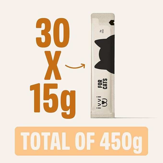 ivvi Skin & Coat for Cats β Functional Creamy Snack with Salmon Oil, Algae Oil, Zinc, Collagen & Biotin β Supports Skin and Fur Health β 30 x 0.53 oz Sachets β with Real Tuna