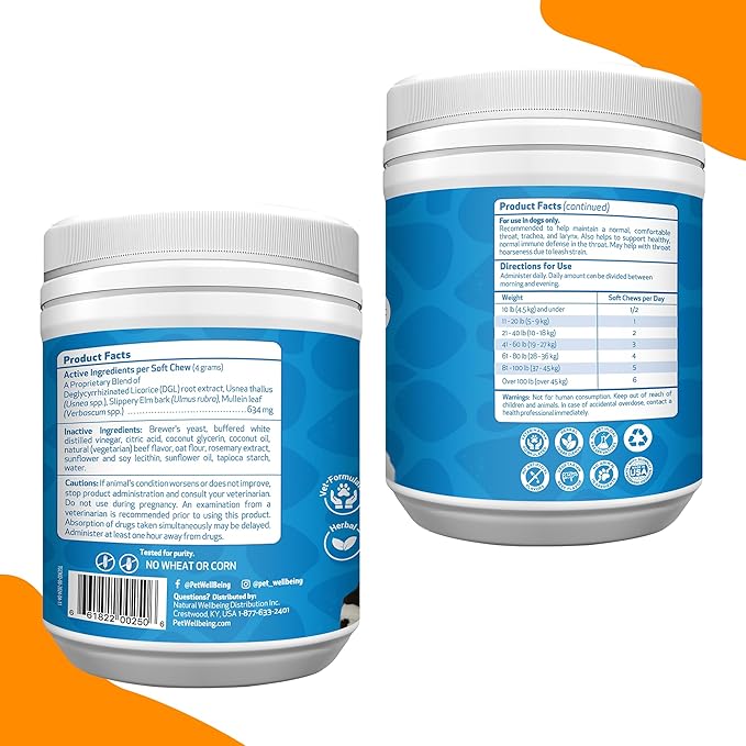 - ๐ฆด CONVENIENT CHEWABLE THROAT SUPPORT - Veterinarian-formulated herbal blend in delicious chewies that dogs love. Same powerful upper respiratory support as our liquid formula, now in a convenient soft chew format for easy daily administration and travel.
