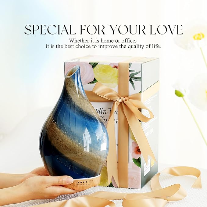 - UNIQUE ART DECOR - 280ml glass essential oil diffuser with star-shaped glass cover & wood grain base. Adds artistic harmony to your living space, perfect for bedrooms, living rooms, kids' rooms, studies, offices, & yoga studios. Enhances ambience