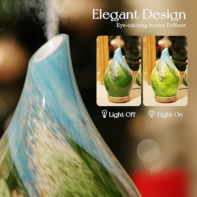- UNIQUE ART DECOR - 150ml glass essential oil diffuser with star-shaped glass cover & wood grain base. Adds artistic harmony to your living space, perfect for bedrooms, living rooms, kids' rooms, studies, offices, & yoga studios. Enhances ambience