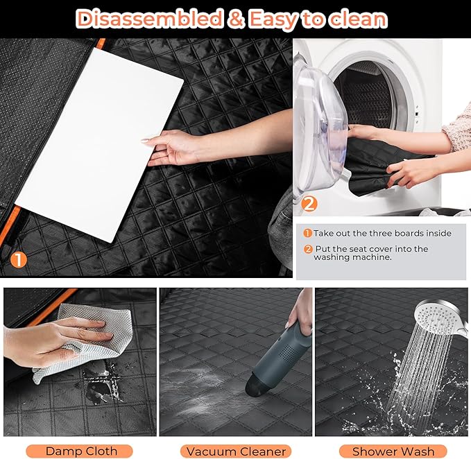 - 【EASY TO INSTALL AND CLEAN】Mildly Home waterproof backseat cover for dogs in car can be installed easily and quickly by fastening 2 buckle straps to the back headrest and tucking the seat retainer into the crease between the seat backrest and the bottom of the seat. Very easy to clean with a damp cloth, vacuum, water shower or machine