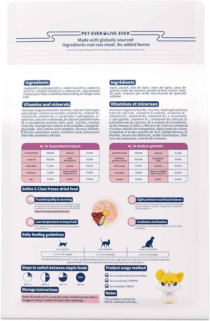 Freeze-Dried Raw Cat Food, 97% Animal Origin Dry Food for Cat, High Protein Treat & Topper (Rabbit Recipe - 14 Ounce)