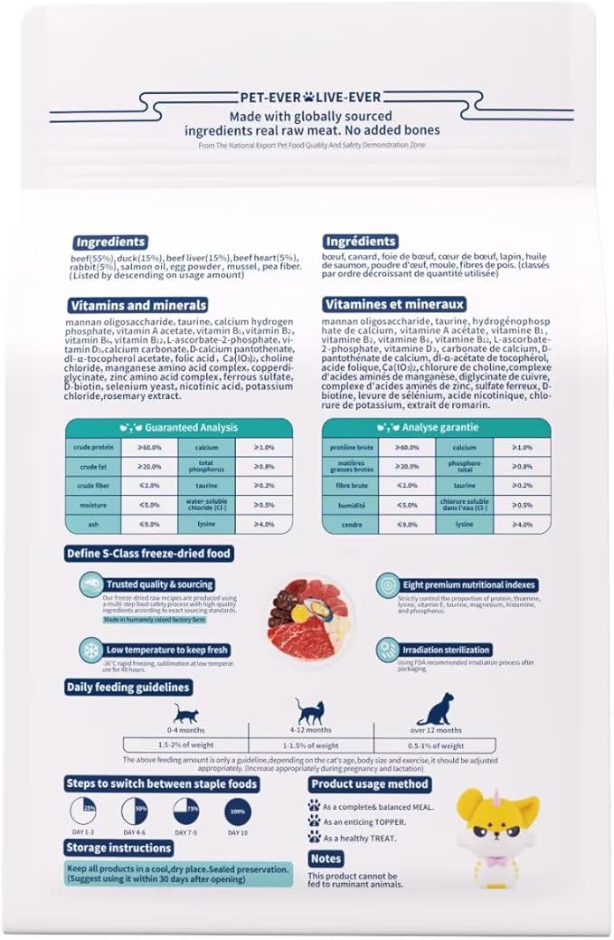 - 【Preserving raw nutrition the right way】 Freeze-dried to lock in nutrients without heat processing, our food gives the benefits of raw feeding with the convenience of shelf storage—no refrigeration required.