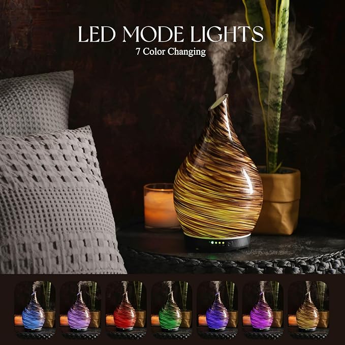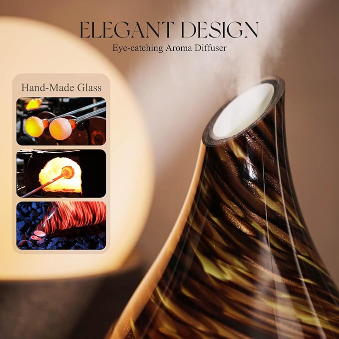 - UNIQUE ART DECOR - 280ml glass essential oil diffuser with star-shaped glass cover & wood grain base. Adds artistic harmony to your living space, perfect for bedrooms, living rooms, kids' rooms, studies, offices, & yoga studios. Enhances ambience