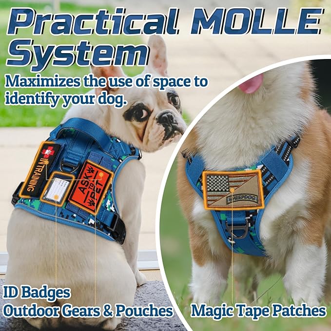 rabbitgoo Tactical Dog Harness for Small Dogs, No Pull Military Service Vest with Handle & Molle, Easy Control for Training Walking, Adjustable Reflective Straps, Blue Camo, S