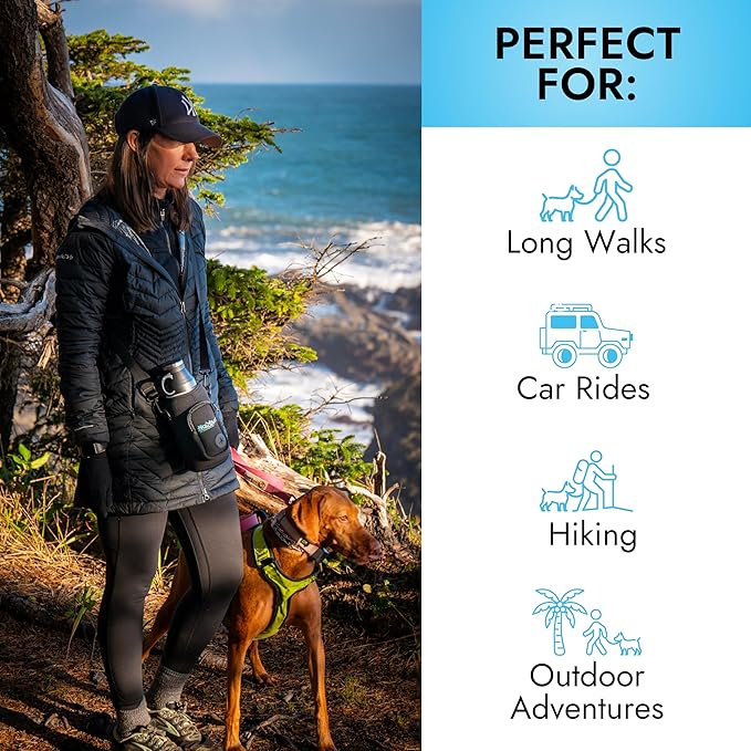 - EASY PORTABILITY WITH CONVENIENT NEOPRENE CARRY BAG - With its included neoprene carry bag, this dog food and water bowl set with puppy bowls offers ultimate portability. The adjustable strap allows you to carry the bottle hands free. Whether you're going on a hike, heading to the park, or traveling, this lightweight dog water bottle portable makes staying hydrated easy. The neoprene bag protects the bottle and the zipper compartment holds poop bags for dogs, your phone, wallet, and keys.