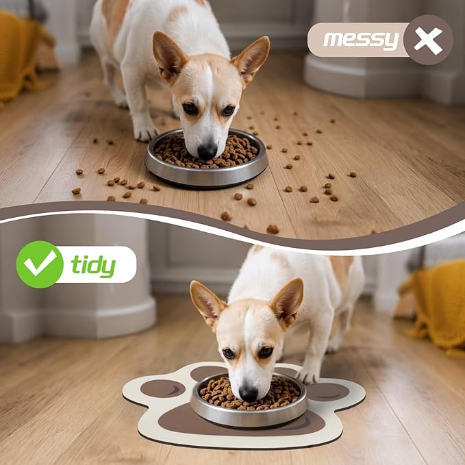 - ❀【Professional Quality】The pet feeding mat is made of diatomaceous earth, which ensures fast water absorption and keeps the mat surface and floor dry and tidy. a non-slip rubber backing that securely maintains its position. The waterproof rubber bottom provides excellent leak protection, preventing water from seeping into the floor and causing damage.