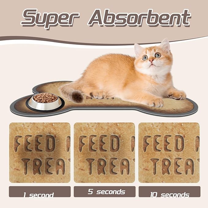 - ❀【Professional Quality】The pet feeding mat is made of diatomaceous earth, which ensures fast water absorption and keeps the mat surface and floor dry and tidy. a non-slip rubber backing that securely maintains its position. The waterproof rubber bottom provides excellent leak protection, preventing water from seeping into the floor and causing damage.