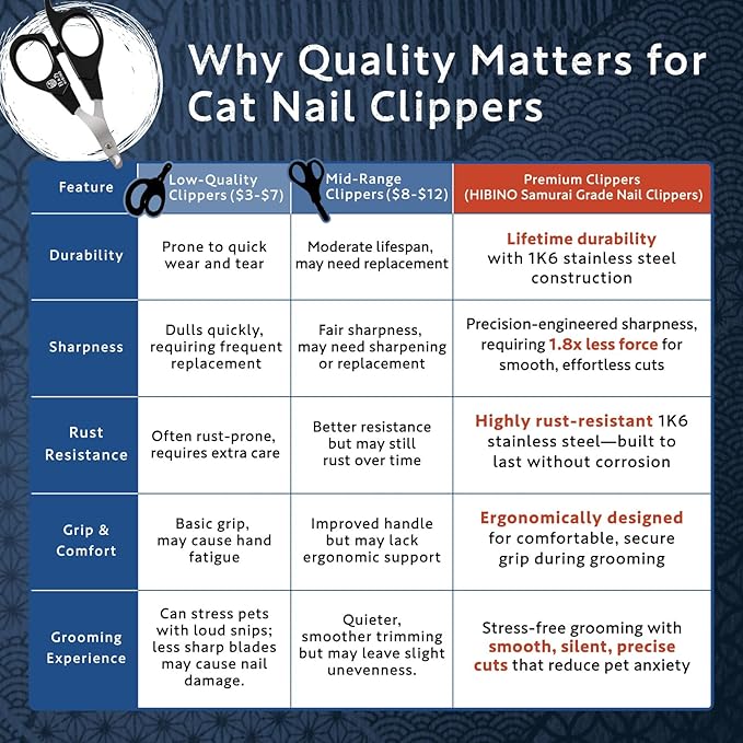 HIBINO Samurai-Grade Cat Nail Clippers | Vet Recommended | Sharper, Quieter & Safer | Precision Blade for Stress-Free Grooming | Non-Slip Grip | Lifetime Durability | Made in Japan