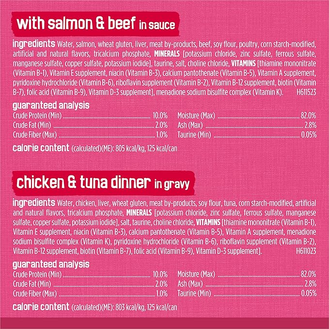 - Canned cat food variety pack formulated to meet or exceed industry standards for cat food