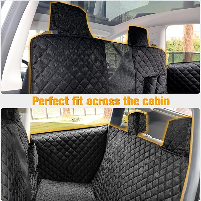 - Custom Fit for Model Y/3: This dog car seat cover measures 54"W x 60"L and is specifically designed for the Tesla Model Y/3, perfectly fitting the rear seats of these models. It offers a safe space for pets to sleep and play, while protecting the vehicle's interior from scratches, fur, and urine damage.