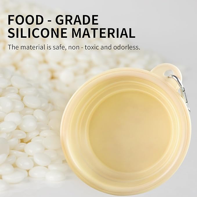 - This collapsible pet bowl is crafted from food-grade silicone, BPA-free and odorless for ultimate pet safety. Durable and reusable, it withstands daily use and is dishwasher safe for hassle-free cleaning.