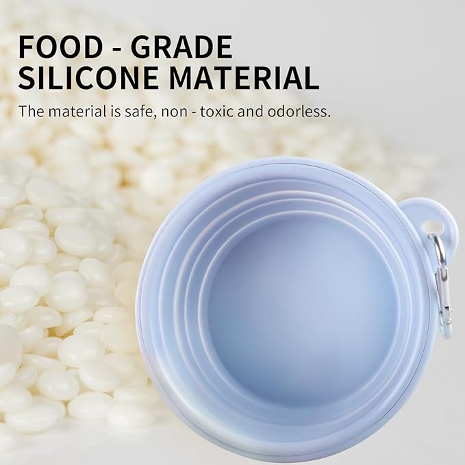 - This collapsible pet bowl is crafted from food-grade silicone, BPA-free and odorless for ultimate pet safety. Durable and reusable, it withstands daily use and is dishwasher safe for hassle-free cleaning.