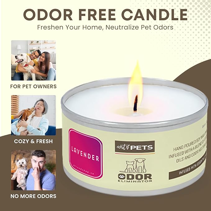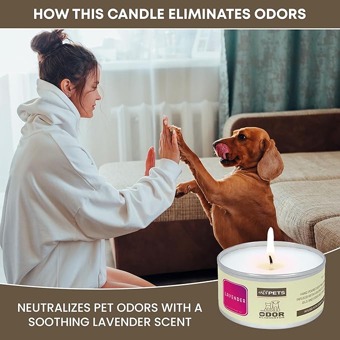 Pet Odor Candle for Dogs and Cats Long-Lasting 72-Hour, Odor Eliminating Candles Burn Natural Soy Wax with Refreshing Scent, Scented Candle to Remove Pet Smells (Lavender)
