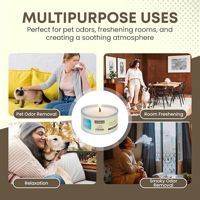- ๐๐๐ฒ ๐๐จ๐จ๐๐๐ฒ๐ ๐ญ๐จ ๐๐๐ญ ๐๐๐จ๐ซ๐ฌ: Our Pet Odor Eliminator Candle is specifically designed to tackle even the toughest pet smells, including litter box odors, wet fur, and everyday messes. Unlike sprays or synthetic alternatives, our odor eliminator for strong odor candle neutralizes odors at the source, leaving your home smelling fresh, clean, and welcoming.