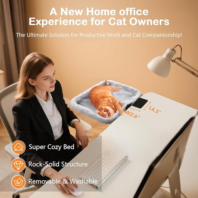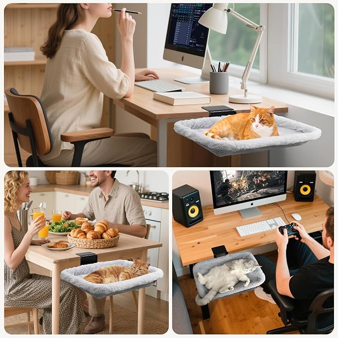 - 【Work-from-Home, Redefined】Calling all cat lovers working from home! This ultimate desk cat bed solution lets you attach a cozy cat bed for desk right to the edge of your workspace. Your furry friend gets a comfy little nook to relax and feel happy, while you enjoy their company without the chaos. Work efficiently, cuddle guilt-free!