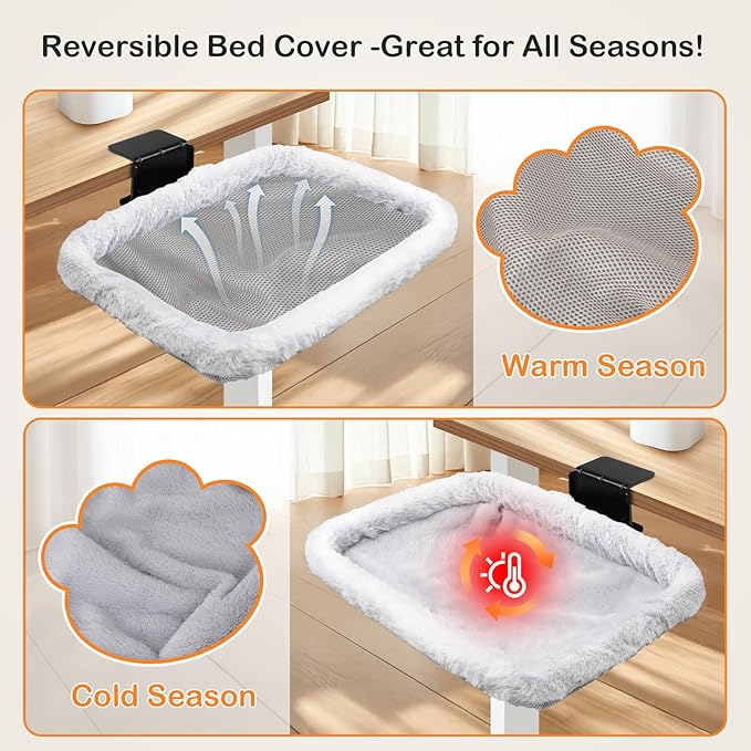 - 【Ultra-Comfortable Design】The cat hammock for desk offers all-around comfort and security, helping your cat unwind and sleep soundly. The reversible cover adds year-round comfort—use the cozy faux fur side for colder days or the breathable mesh fabric for warmer weather.