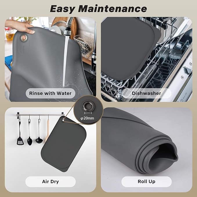 - Pet Friendly Mat: Made from BPA-free silicone, this cat & dog water mat is safe for your pets and built to last. The silicone is tough enough to withstand frequent use and is resistant to damage from pet nails or teeth, ensuring a long-lasting addition to your pet care essentials. The cat & dog feeding mat's sleek color adds a touch of elegance to your pet’s feeding area, seamlessly blending with most home decor while maintaining a stylish, unobtrusive look