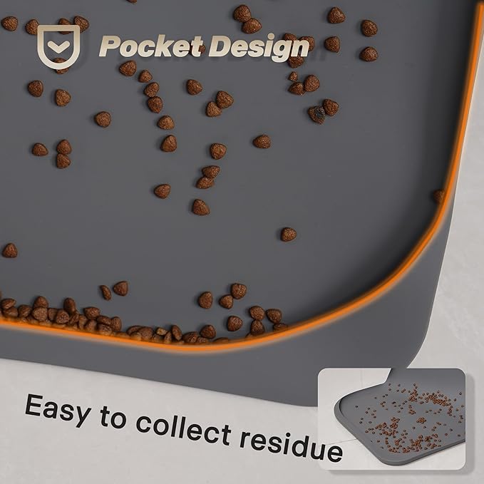 Dog & Cat Mat for Food and Water - Nityers Dog Food Mat for Floors Waterproof with Pocket, High Raised Edges, Thicker BPA Free Silicone, Pet Feeding mat for Bowl, Automatic pet Feeder, Water Fountain