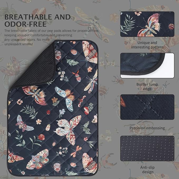 IEUUMLER Washable Pee Pads for Dogs, 1 Pack Insect Pattern Reusable Waterproof Puppy Potty Pads, Non-Slip Absorbent Pet Training Pads for Playpen Crate Bed EU014