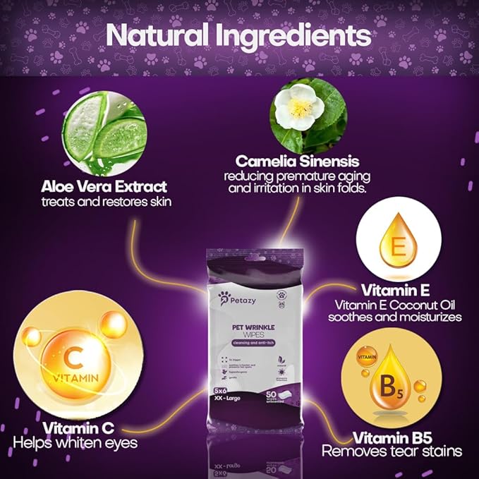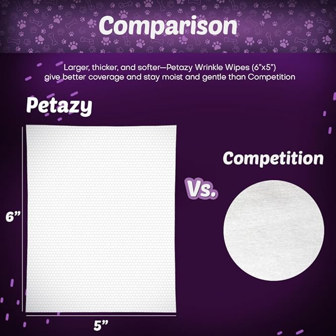 Wrinkle Wipes for Dogs 50 Count 5x6 | 3X Larger Dog Face Wipes for French Bulldog and Pug - Cleans Skin Folds, Tear Stains, Tail Pockets | Anti-Itch, Soothing & Hypoallergenic with Coconut Oil