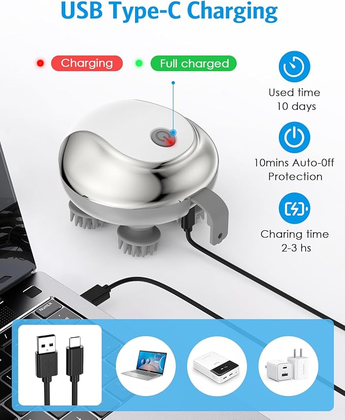 - 【Portable & Rechargeable】Cordless Handheld Pet Massager offers a comfortable grip with its silver-coated design and compact cordless form. Ideal for pet massages anytime, anywhere. It includes a Type-C charging cable and has a 10-minute auto-shutoff for energy efficiency. For best performance, fully charge before first use and avoid using while charging