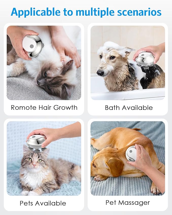 - 【IPX7 Waterproof】Electric Pet massager is made with IPX7 waterproof material, making it safe to use in the shower to relieve itchiness. Its food-grade silicone massage heads are detachable, ensuring gentle use, prevent pulling and tangling, and won't harm your pet's skin