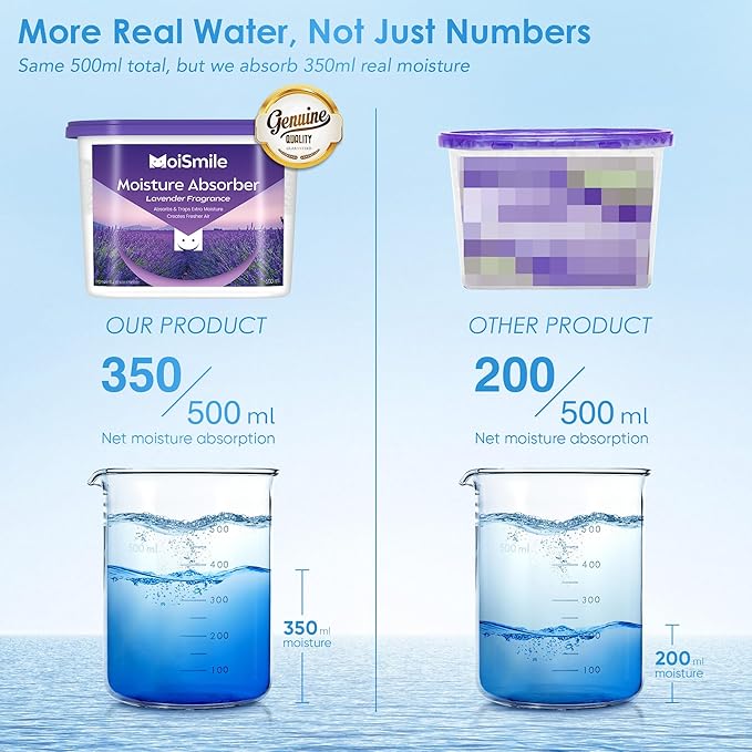 - Zero-leakage: Designed with three layers of waterproof paper, Moismile moisture absorbers for cars ensure 100% leak-proof performance. Moisture stays locked inside even if tipped or shaken—perfect as a car dehumidifier moisture absorber or rv moisture absorber for vehicles, closets, and bathrooms.Note: Do not remove the waterproof paper. Just peel off the aluminum foil seal before use.