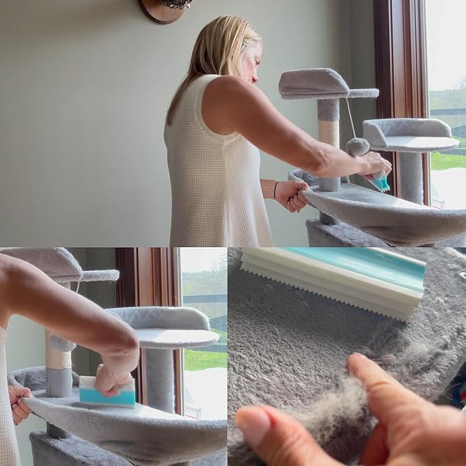 - >>4 in 1 Powerful pet hair remover - This pet removal tool is designed to deal with dog & cat hair on various surfaces and crevices. Especially good at uprooting embedding hair in carpet, recommend to use it before running the vacuum on the carpet, so that to do the spring cleaning even in summer!