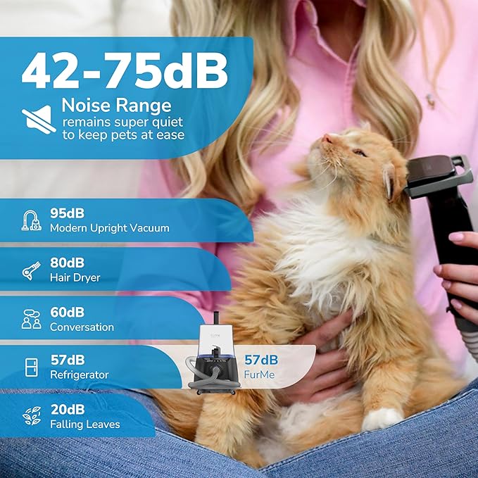 - Ultra Quiet: A 42-75dB noise range ensures a stress-free dog grooming experience, keeping dogs calm and comfortable while using the grooming vacuum.