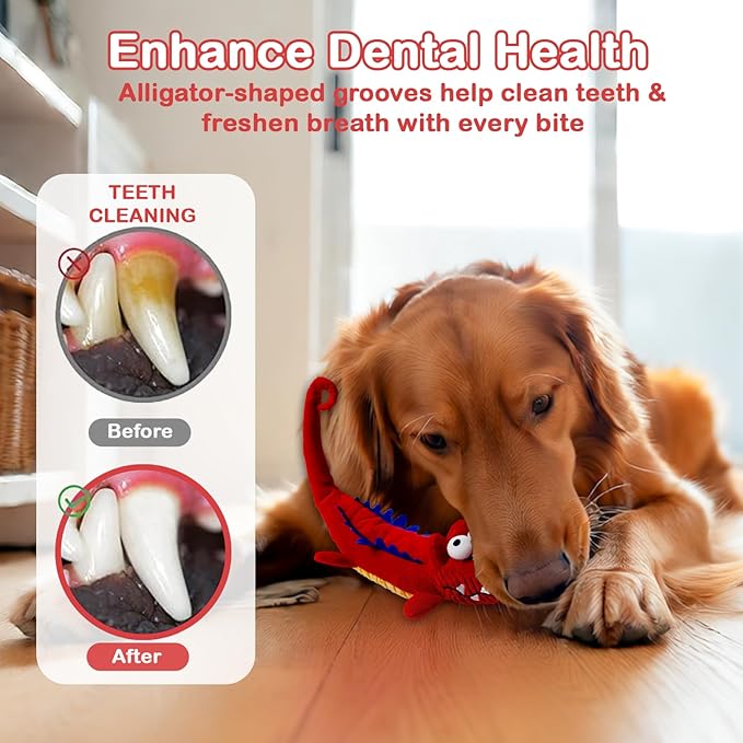 - Attractive Design and Suitable for All Breeds: Inspired by wild animals, the crocodile dog toy features charming patterns and fun textures that delight dogs. It is loved by dogs of all sizes. You can watch your dog pounce and shake this irresistible plush toy, as it stimulates their natural play instincts.