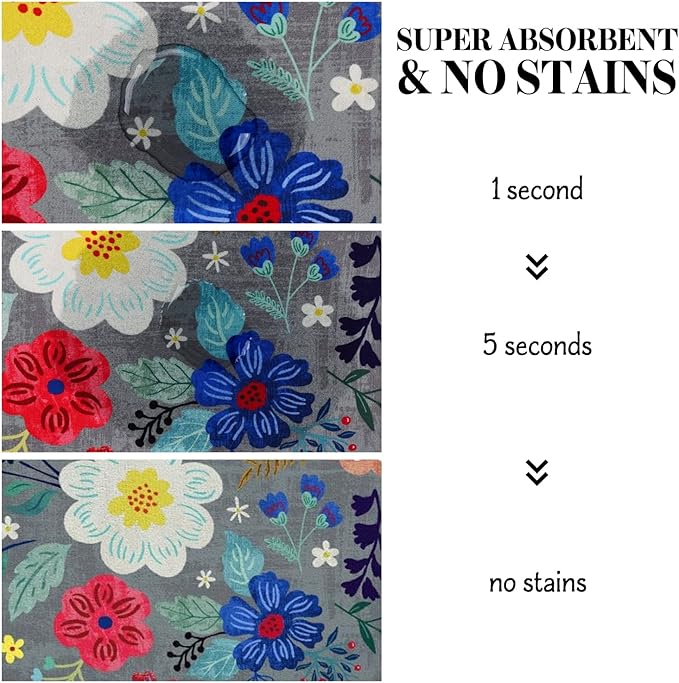 - Super Absorption: The dog mat for water bowl can absorb spilled water without leaving traces and dry quick, avoid wetting pet paws even for messy drinkers. And it does not attract pet hair like traditional silicone dog bowl mat.