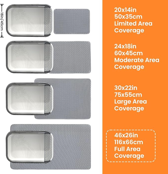 - The Ultimate XXL Litter Mat: Covering a generous 46x26 inches, this giant cat mat for litter box captures every stray piece of litter from cat’s paws and the floor, keeping home spotless. No more daily sweeping, no more lingering odors — just a cleaner, fresher home and more free time for you!